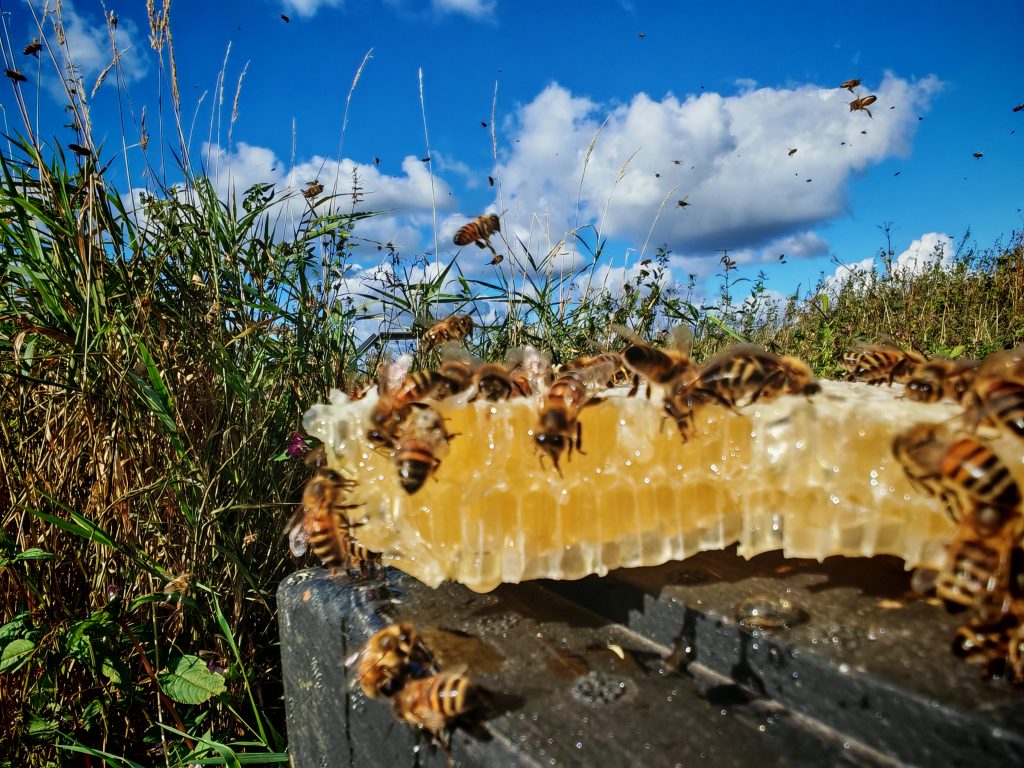 Our honey is harvested in small batches from apiaries on the hillsides of Saddleworth and a carefully managed urban apiary in Chadderton.